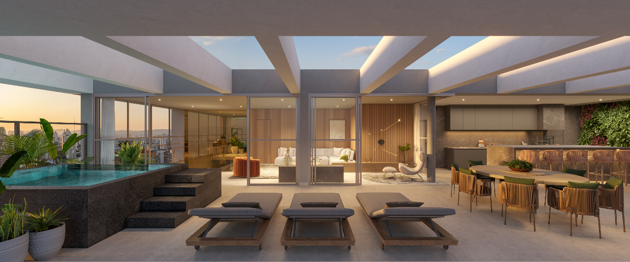 Originado da diversidade, será composto por três torres residenciais, cada uma com sua identidade única, mas unidas por uma linguagem arquitetônica coesa, que se apoia em um podium. Este podium, um enorme terraço-jardim, não apenas abriga as áreas de lazer e grande ponto de encontro, mas também serve como um elegante elemento de integração e acolhimento para as fachadas ativas do complexo. The Rose surge como um equilíbrio sublime entre a rigidez da cidade e as gentilezas urbanas, materializado na figura sutil e simbólica da rosa – um emblema que se entrelaça com a identidade da região ao redor da estação Ana Rosa do Metrô.